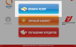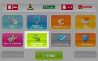 1. Выбрать пункт Оплата услуг в Главном меню.