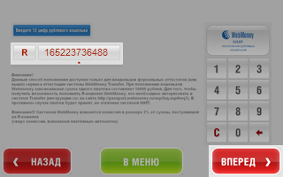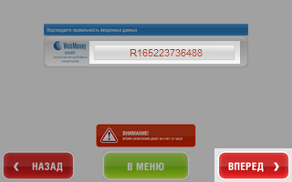 Вот такую последовательность действий необходимо совершить, чтобы пополнить кошелек WebMoney через терминал QIWI. Пополнение счета Яндекс.Деньги производится аналогично. В терминалах других фирм оформление интерфейса может отличаться, но последовательность действий примерно такая же.