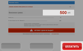 6. Внесите деньги и нажмите Оплатить, не забудьте взять чек.
